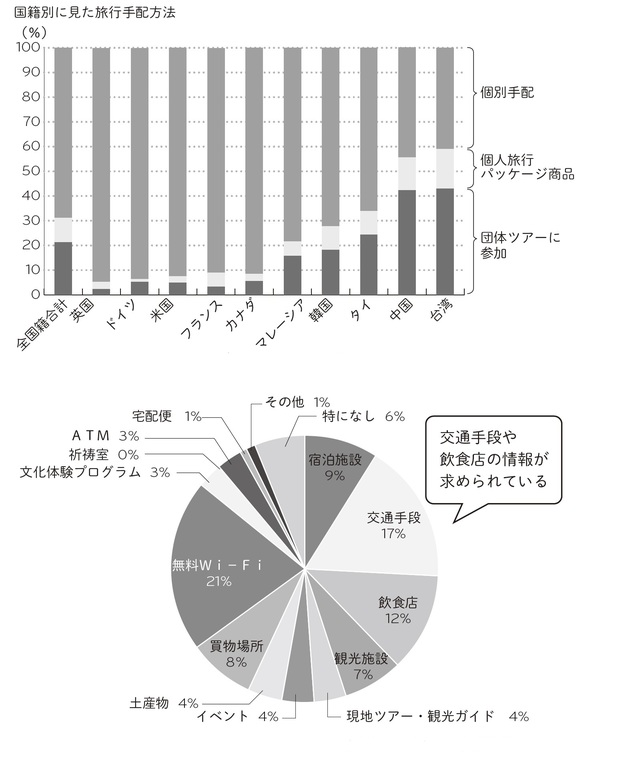 観光庁の調査によると、日本を訪れる外国人たちは、全体の68%が個人で交通機関やホテルなどの手配をしています。彼らはまた、日本への旅行前や滞在中に、SNSやウェブサイトなどで情報収集をしているのです。
