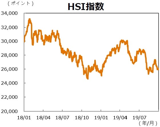 香港デモがマクロ経済の悪化を招き、市場心理を低迷させている。節目とみられていた10月1日国慶節を経て、当局のデモ対応方針がより強硬的なものに転じると波乱の展開も予想される。デモ収束への道筋が見えるまでは、株価バリュエーションの拡大は想定しづらい。香港域内からの売上構成比率が低く、中国本土に収益基盤を有する企業への選別投資が望ましいだろう。