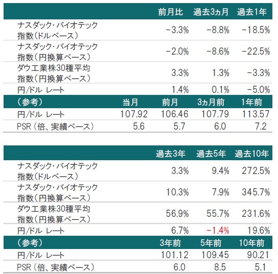 9月のナスダック・バイオテック指数(ドルベース、配当含まず)は下落しました。