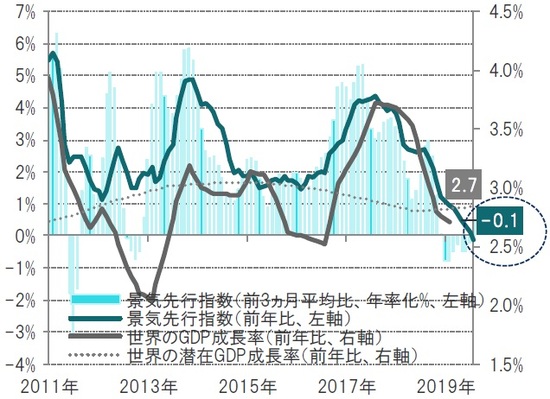 ※世界のGDP成長率:39カ国の先行指数の加重平均、世界の潜在GDP成長率:ピクテによる潜在成長率推計