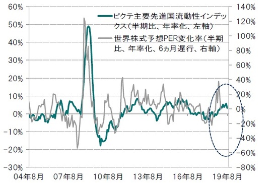 ※先進国株式:MSCI世界株価指数※世界株式予想株価収益率(PER)予想変化率は2005年2月~2019年8月