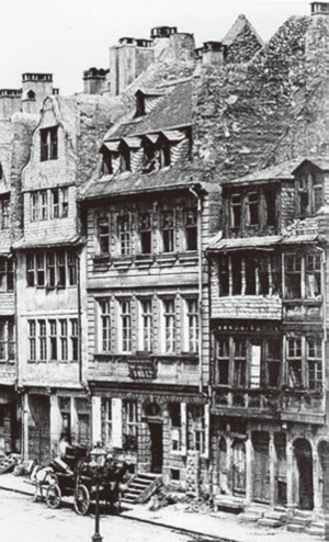 初代ロスチャイルドは、1744年ドイツ・フランクフルトのユダヤ人の強制居住区(ゲットー)で生まれました。この時代、迫害を受けていたユダヤ人たちは、この狭いゲットーに強制的に集められ住まわされていました。