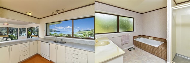 アルバニーなどの学校・商業地区から田園のような雰囲気漂うブッシュ地域を通り、この物件へとアプローチします。築36年になるため、キッチン、バスルームは時代を感じる古いものですが、ウォーターフロントにあり、皆が憧れる物件です。