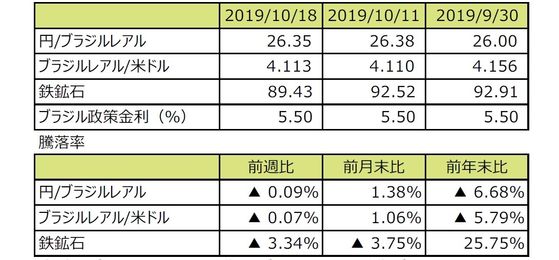 (注2)ブラジルレアル/⽶ドルの騰落率はブラジルレアルの対⽶ドルでの騰落率。