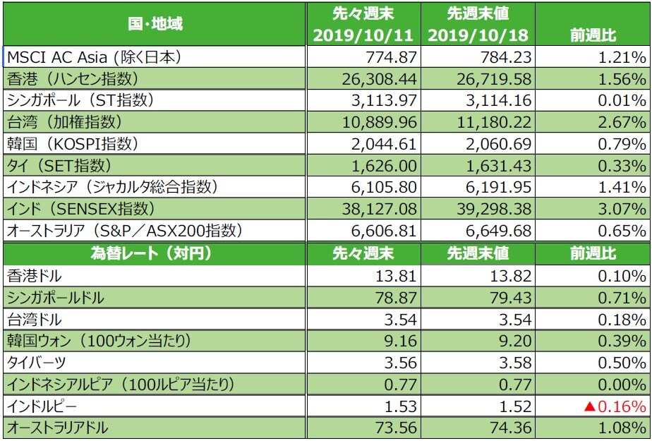 2019年10月17日 グローバル景気の回復期待がけん引するアジア株式市場