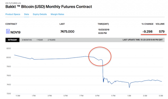 そんななか、Bakktの現物決済ビットコイン先物の月間契約は、過去最高の出来高を記録している。本日の休場で計579BTCが取引された。