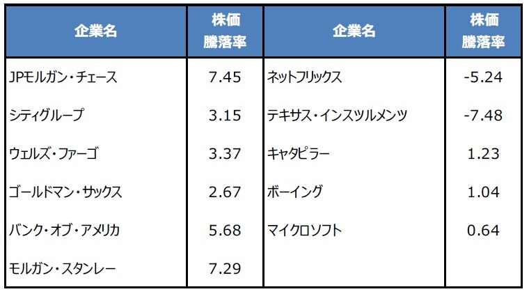7-9月期決算の先陣を切った米金融大手6社はおおむね好調な決算となり株価はいずれも上昇