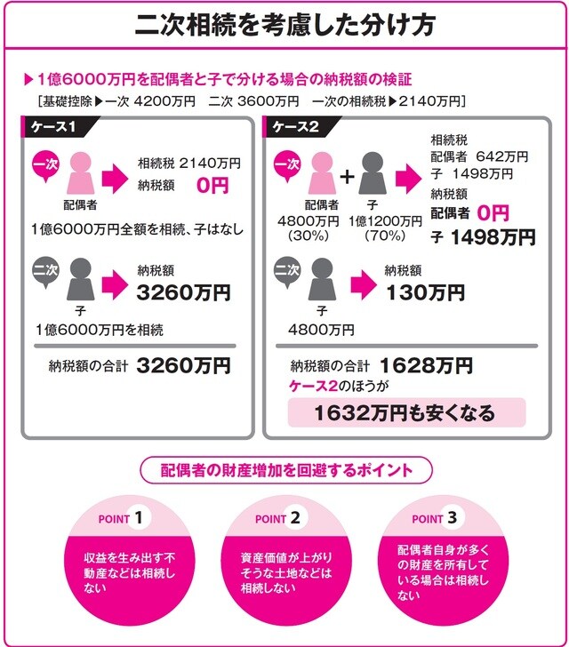 ❶一次相続、二次相続トータルで節税できる対策を検討する。