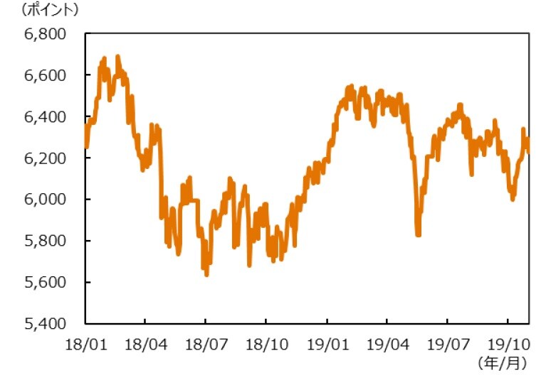 10月は自律反発の動きとなったが、依然抗議デモ収束への道筋は見えない。11月24日に予定される区議会議員選挙に向けてデモが過激化する可能性もあり、当局のデモ対応方針がより強硬的なものに転じると波乱の展開も予想される。当面、株価バリュエーションの拡大は想定しづらい。香港域内からの売上構成比率が低く、中国本土に収益基盤を有する企業への選別投資が望ましいだろう。