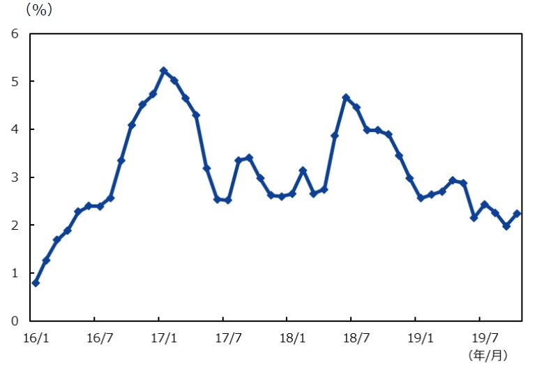10月の消費者物価は前年同月比+2.2%と、引き続き政府目標の4%を下回った。低インフレは国内需要の安定成長のための重要な要素となる。