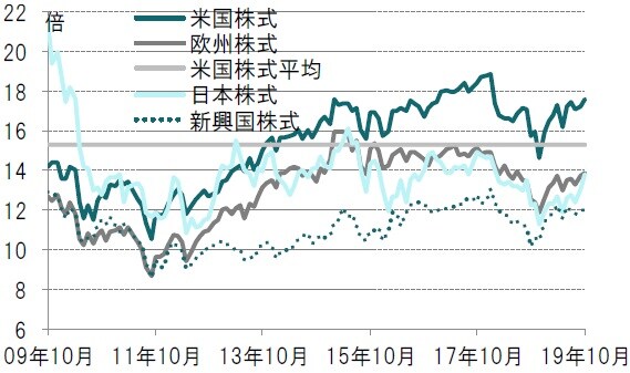 ※先進国株式:MSCI世界株価指数※世界株式予想株価収益率(PER)予想変化率は2005年2月~2019年9月