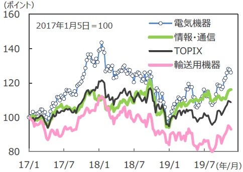 ■引き続き米中通商協議の行方が注目点です。第1フェーズの合意が遅れる可能性が指摘される中、市場はいずれ妥結すると楽観的に見ている分、変動性が高まることも考えられます。ただ、こうした中でも、世界経済の回復期待は強まっており、減少傾向にあったIT関連の受注・生産の落ち込みペースが緩やかになるなど、徐々に景気回復に向けた動きが見られます。
