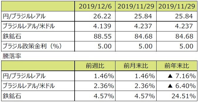 (注2)ブラジルレアル/米ドルの騰落率はブラジルレアルの対米ドルでの騰落率。