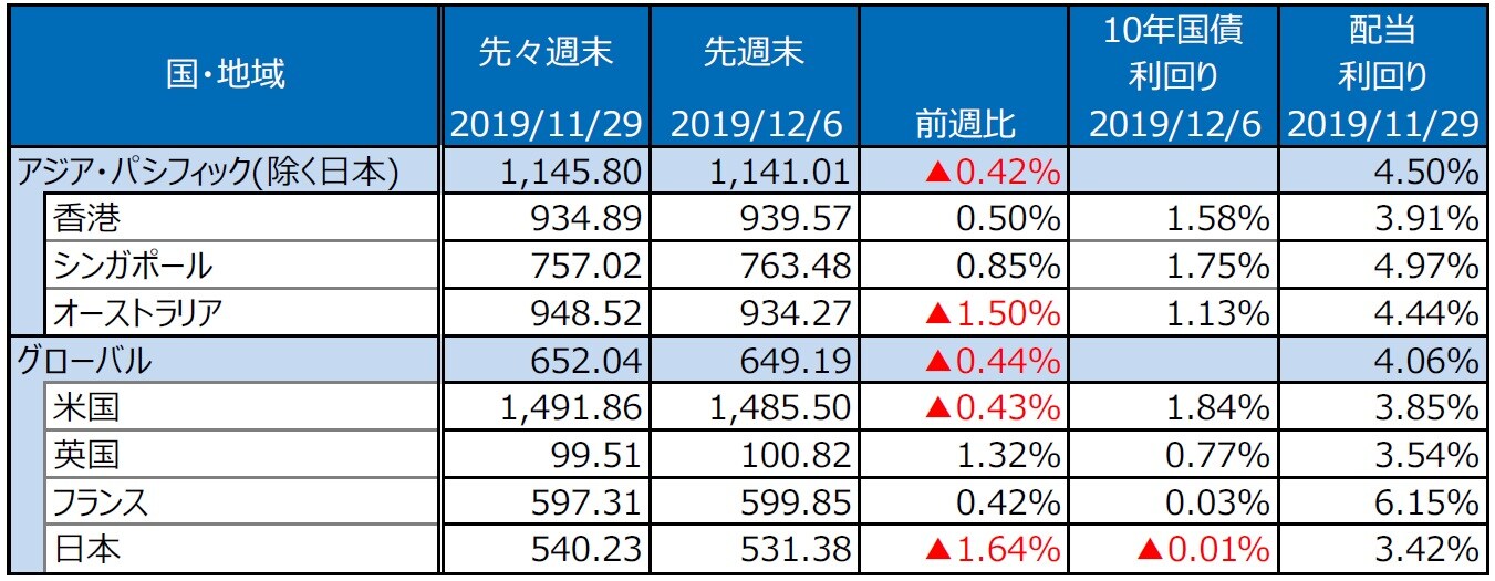 (注4)前週比は2019年11月29日から2019年12月6日まで、前月末比は2019年11月29日から2019年12月6日まで、前年末比は2018年末から2019年12月6日まで。
