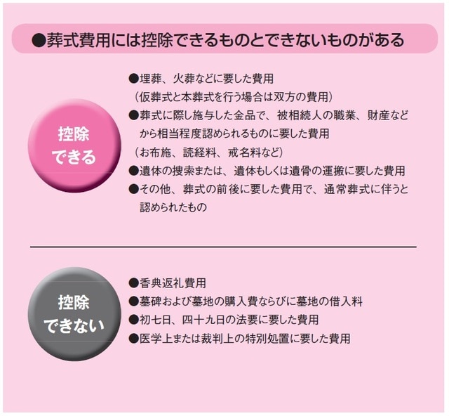 ●通夜、告別式に要した費用などの葬式費用も控除の対象となる。