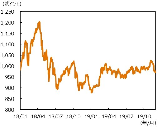 区議会議員選挙における民主派の圧勝を経て、相場も落ち着きを取り戻しつつあるが、民主化を要求する香港市民(デモ隊)と香港・中国政府のスタンスの隔たりは依然解消されない。再度抗議デモが激化するリスクを考えれば、当面、株価バリュエーションの拡大は想定しづらい。経済打撃の大きい香港域内の売上構成が低く、中国本土に収益基盤を有する企業への選別投資が望ましいだろう。