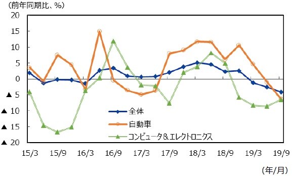 タイへの観光客数は10月に前年同月比+12.5%と、10月の同+10.1%から加速した。2018年7月にプーケット島でボート事故が発生したことによるベース効果に加え、香港デモの影響で中国人観光客が訪問先をタイに変更した影響とみられる。一方、自動車産業を中心に製造業のサイクルは下向きにあり、全体としては景気下振れリスクが高まっている。政府は8月に続き11月にも景気支援策を発表しているが、景気テコ入れにはデレバレッジ政策の緩和が必要となろう。