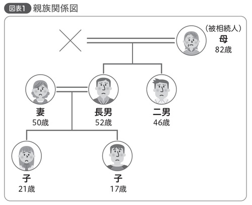 母は定職に就かない二男を心配し、「将来食べていくのに困らないように」と、「私が所有するアパートの土地および建物と、そのアパートに係わる借入金の全額を二男に相続させる」と記載した遺言書を作成した。遺言書作成から5年後、母が死亡した。享年82歳。相続人は長男52歳と二男46歳の2人であった[図表1]。