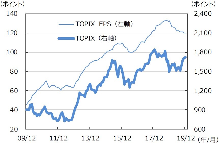 (注)データは2009年12月~2019年12月。EPSはリフィニティブI/B/E/Sによる予想ベース。