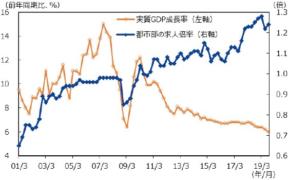 共産党・政府は12月10~12日、中央経済工作会議を開催した。経済政策では「安定」を最優先に掲げた。さらに中国経済には、構造的・体制的・循環的な問題が同時に発生しており、下押し圧力が高まっているとの認識を示した。2010年以降、中国の成長率は緩やかに鈍化しているが、2020年も供給側改革など様々な構造改革を続ける公算が大きい。党・政府は無理に成長率を加速させる意図を持っていないようで、労働市場が安定している限り、ある程度の成長率鈍化を容認する見通しだ。