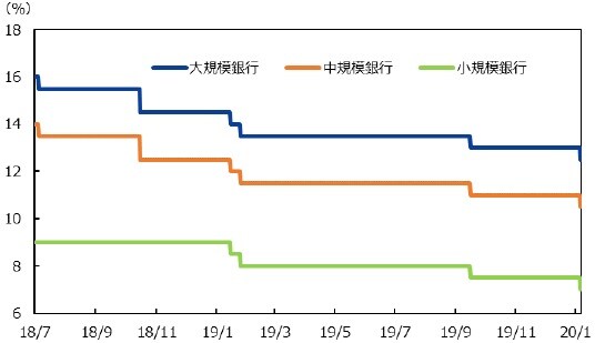 政策スタンスでは、2018年同様、「積極的な財政政策・穏健な金融政策」を掲げた。しかし、財政政策については、質と効率に言及しており、大規模な歳出拡大や減税には消極的と解釈できる。金融政策については、資金調達コストの引き下げと柔軟性に言及している。基本シナリオの下では各種金利および預金準備率の引き下げで対応し、予想外の景気下振れに対しては金融緩和を進める方針と解釈できる。実際、人民銀行は1月1日、預金準備率を1月6日から0.5%ポイント引き下げると発表した。