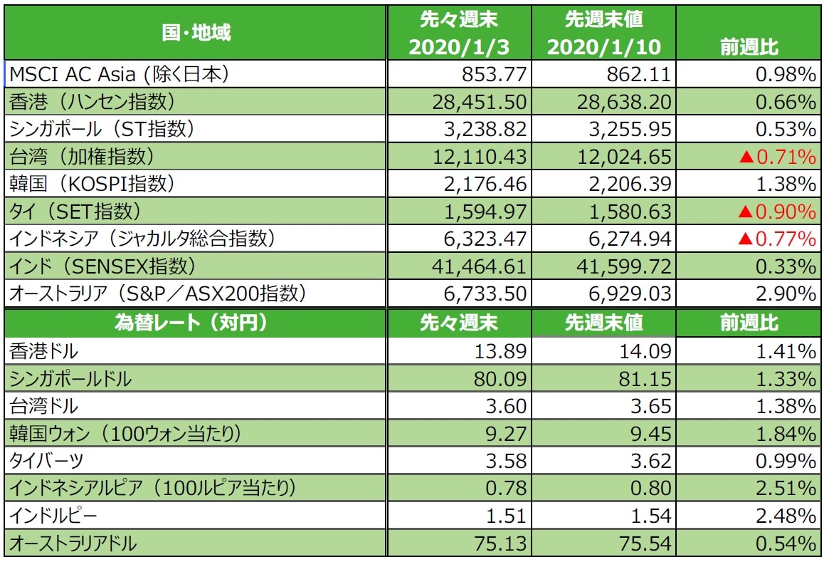 (注4)前週比は2020年1月3日から2020年1月10日まで、前月末比は2019年12月31日から2020年1月10日まで、