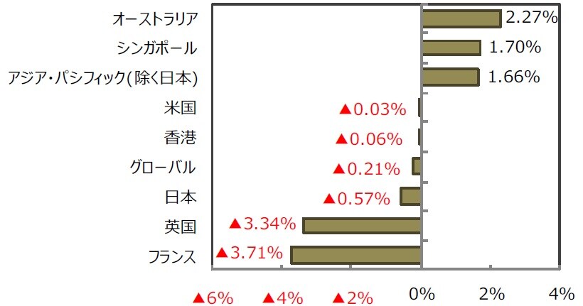 グローバル・リートは欧米の長期金利の上昇を嫌気して0.21%下落しました。