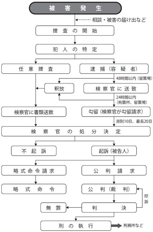 このように、逮捕されたからといって必ず留置されるわけではありませんし、また検察に身柄が送られるとは限らないわけです。なお、逮捕を含めた捜査の流れは図表のような形となっています。