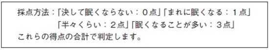 これから挙げる8つの場面に対して、4段階の回答の中から最も当てはまる眠気の度合いを選んでください。
