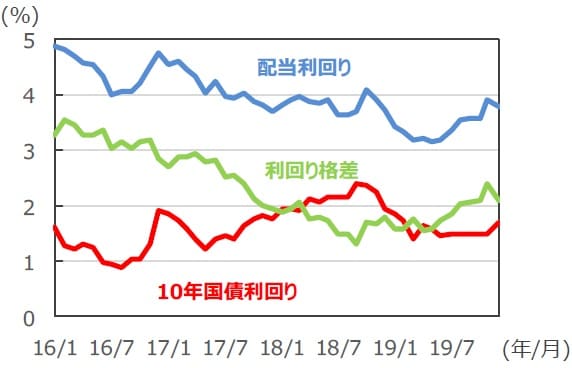 ■香港では、デモの長期化と景気回復の遅れが懸念されますが、小売業も時間はかかりますが回復すると思われます。リートの配当利回りと10年国債利回りとのスプレッドを見ると、10年国債利回りが低水準で推移していることから、割高感はありません。さらに、先に触れたように香港最大手のリンク・リートが海外物件を取得したことで業績への好影響が期待されていることなどが下支え要因になると考えらえます。