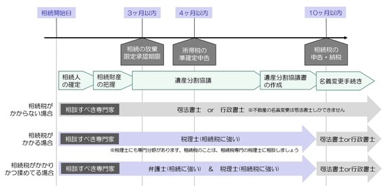 相続の一般的な流れは[図表1]の通りですが、このなかで遺産分割協議が長引いてしまうことがよくあります。遺産の分け方が決まっていようがいまいが、「相続税の申告」は被相続人が亡くなった日から10ヵ月以内にしなければなりません。