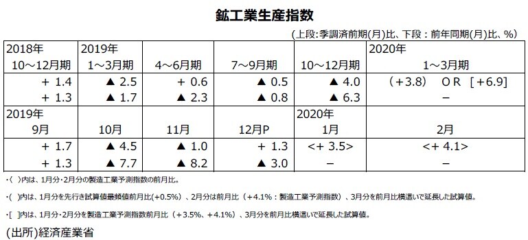 ※当レポートの閲覧に当たっては【ご注意】をご参照ください(見当たらない場合は関連記事『2019年12月分鉱工業生産指数・速報値について』を参照)。