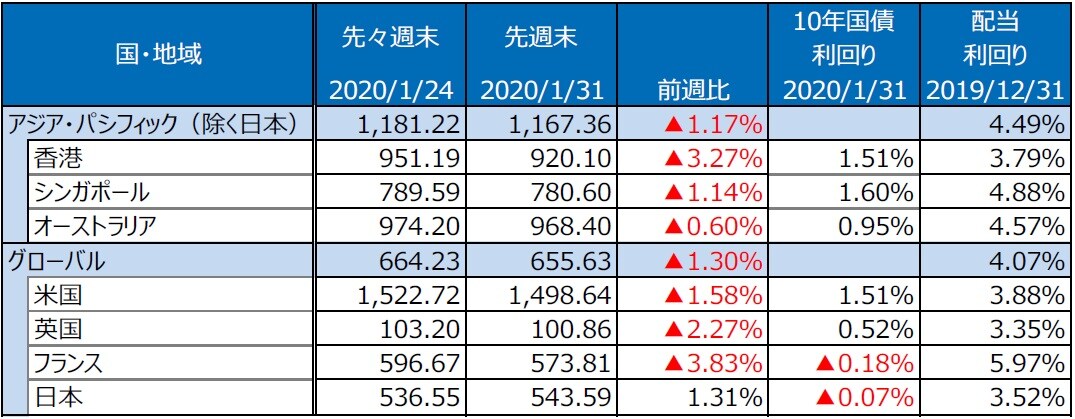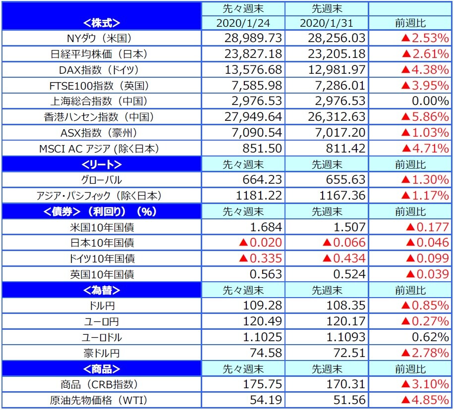 (注4)前週比は2020年1月24日から2020年1月31日まで、前月末比は2019年12月31日から2020年1月31日まで、 前年末比は2019年末から2020年1月31日まで。