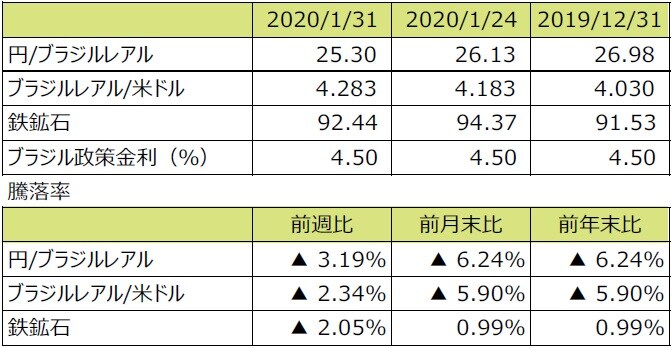 (注2)ブラジルレアル/米ドルの騰落率はブラジルレアルの対米ドルでの騰落率。
