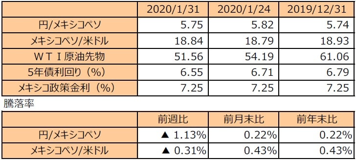 (注2)メキシコペソ/米ドルの騰落率はメキシコペソの対米ドルでの騰落率。