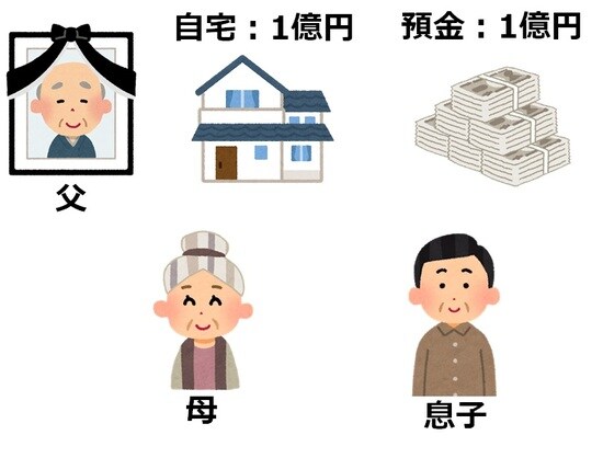 [図表2]のようにお父さん、お母さん、子どもの3人家族がいて、お父さんは1億円の自宅と、1億円の預金があったとします。