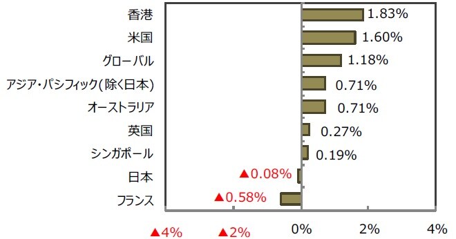 グローバル・リートは欧米の株式市場の上昇を好感して1.18%上昇しました。