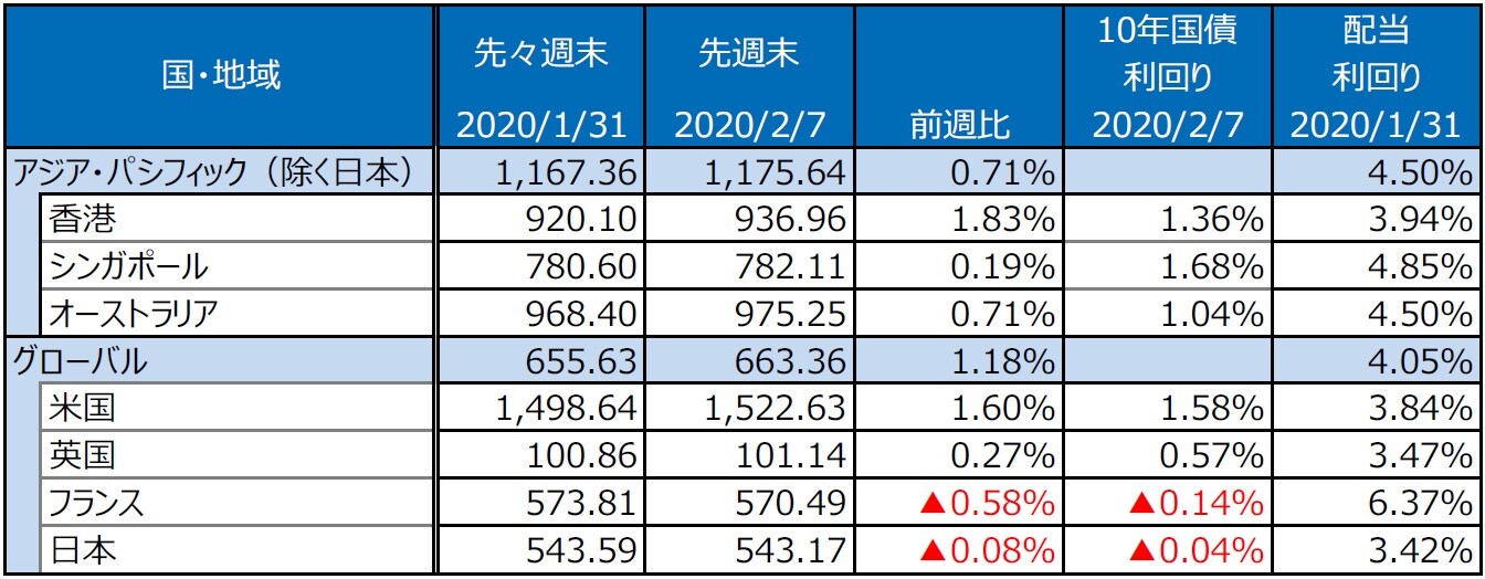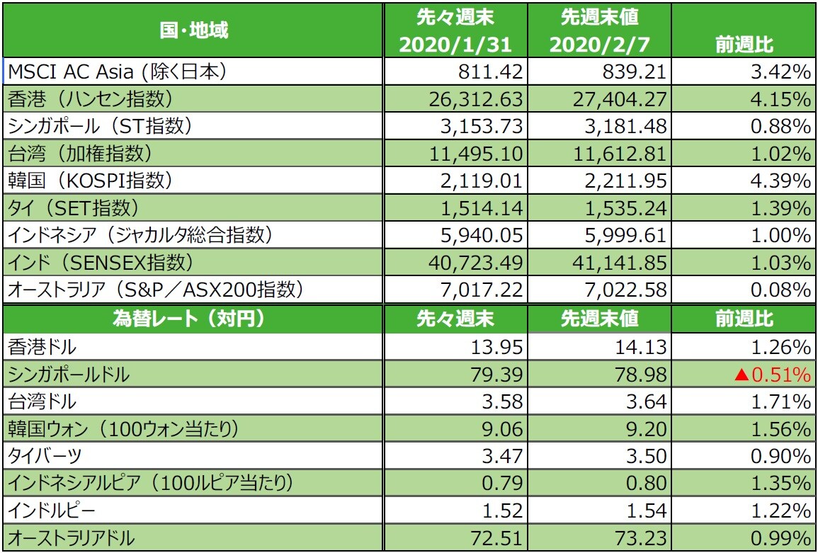 (注4)前週比は2020年1月31日から2020年2月7日まで、前月末比は2020年1月31日から2020年2月7日まで、前年末比は2019年末から2020年2月7日まで。