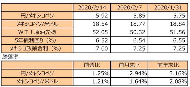 (注2)メキシコペソ/米ドルの騰落率はメキシコペソの対米ドルでの騰落率。