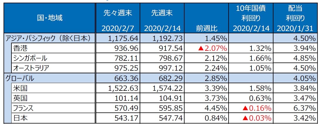 米国の10年国債利回りは、米利下げ観測がやや後退したことなどから一時上昇したものの、中国の新型肺炎の感染者数拡大などから低下し、前週比横ばいでした。日本は小幅上昇した一方、ドイツは小幅低下しました。