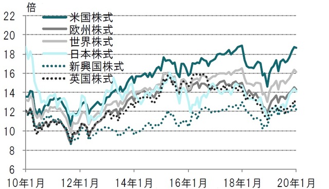 ※先進国株式予想株価収益率(PER)予想変化率は2005年6月~2020年1月