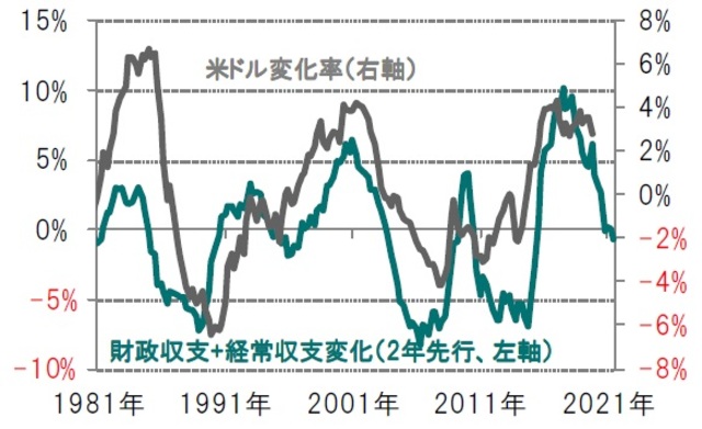 ※財政収支+経常収支変化:GDP比、5年変化率、2年先行