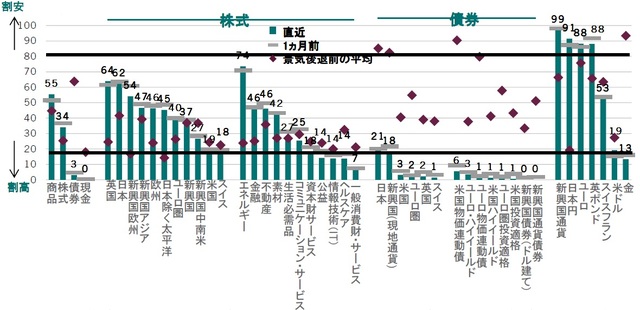 ※景気後退前の平均:2000年と2007年の平均値各資産のバリュエーション、