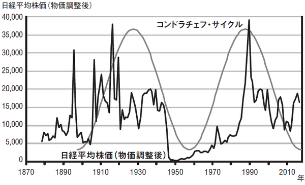 図表2は日本株の推移とコンドラチェフ・サイクルを比較したチャートである。