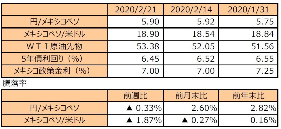 (注2)メキシコペソ/米ドルの騰落率はメキシコペソの対米ドルでの騰落率。