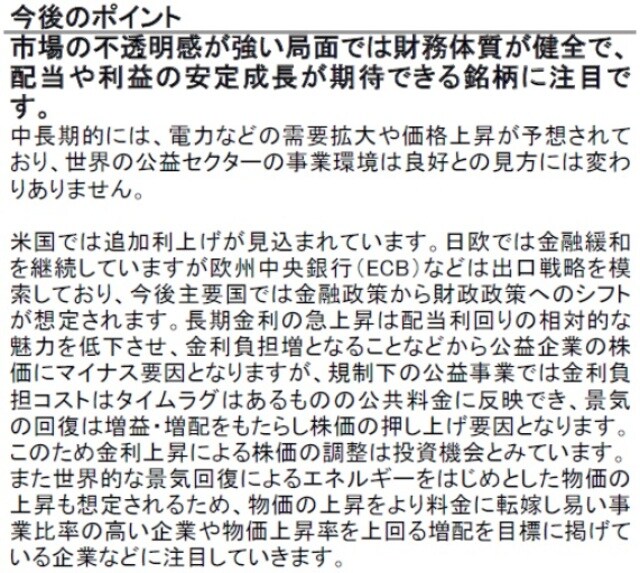 またコメント欄を見ると、市場はどうだったのか、運用会社が運用環境をどう見ているのか、また今後の見通しをどう考えているのかなどが分かります。(図表2)