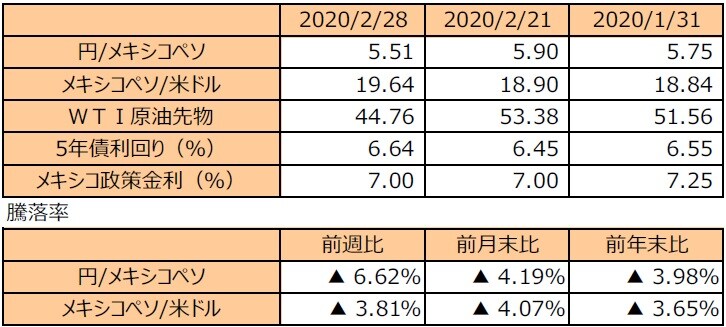 (注2)メキシコペソ/米ドルの騰落率はメキシコペソの対米ドルでの騰落率。