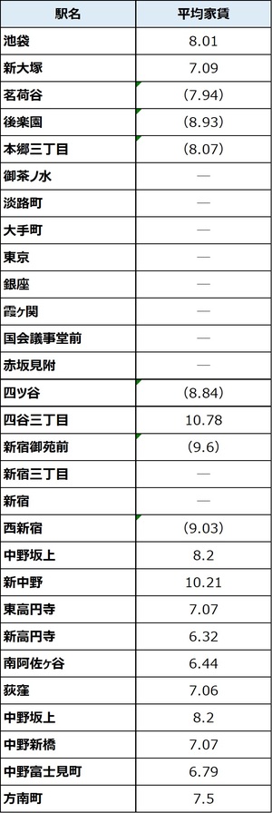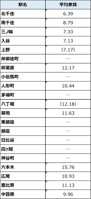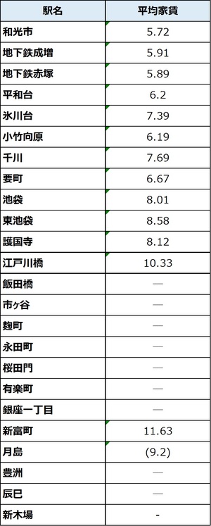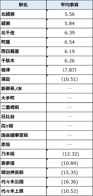 そこで東京メトロ沿線の各駅の平均家賃から、会社員でも住まい選びの候補となりえる街はどこかをみていこう。