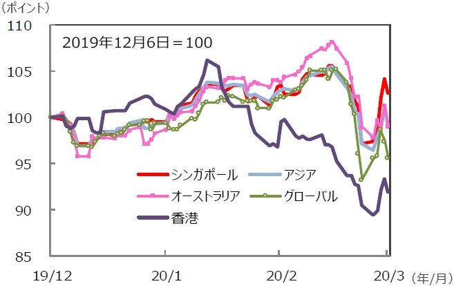 (注4)前週比は2020年2月28日から2020年3月6日まで、前月末比は2020年2月28日から2020年3月6日まで、前年末比は2019年末から2020年3月6日まで。