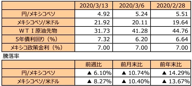 (注2)メキシコペソ/米ドルの騰落率はメキシコペソの対米ドルでの騰落率。